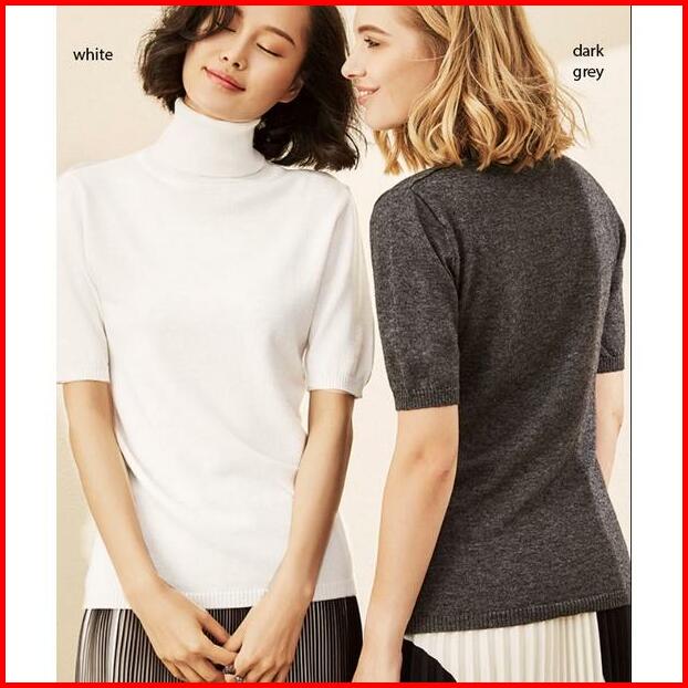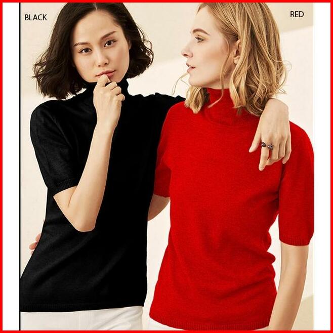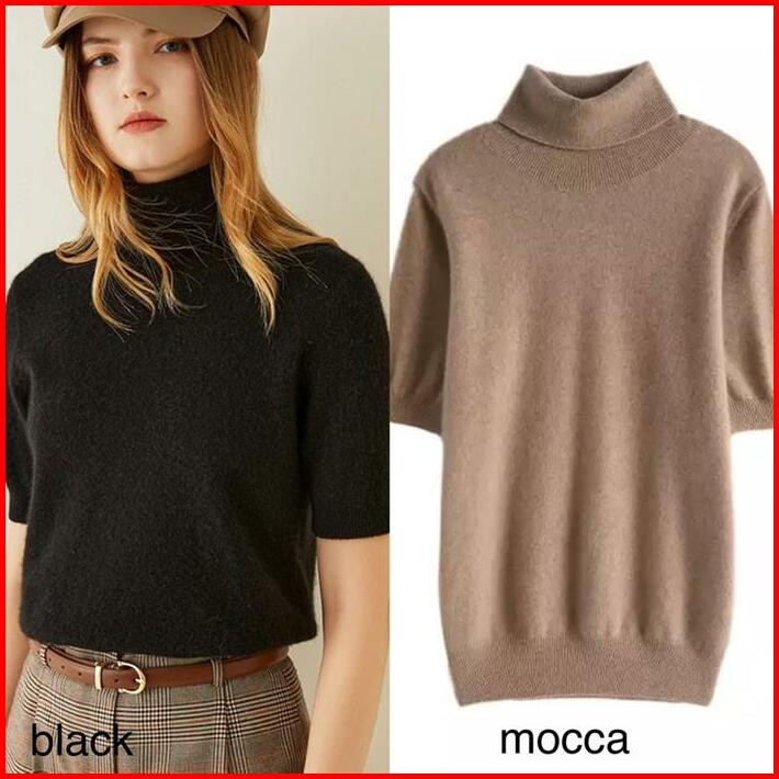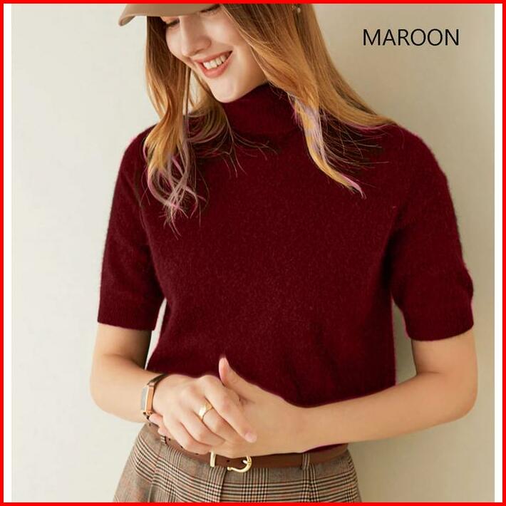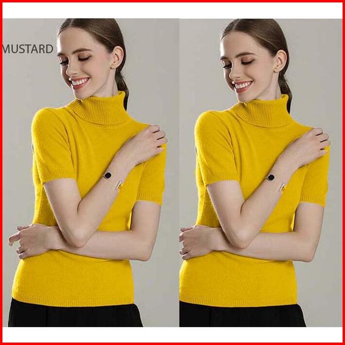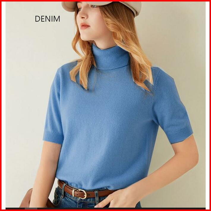B122 Short Sleeve Turtleneck Blouse Knit Rajut Knitted Knitwear Wanita Atasan Top Sweater
