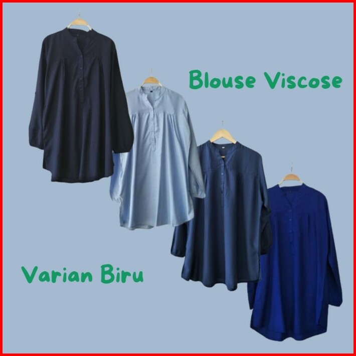 Blouse Polos Viscose Jumbo Biru Jeans Navy Birel Ld Up To 138cm