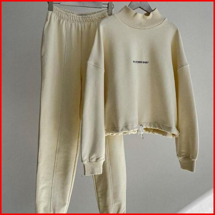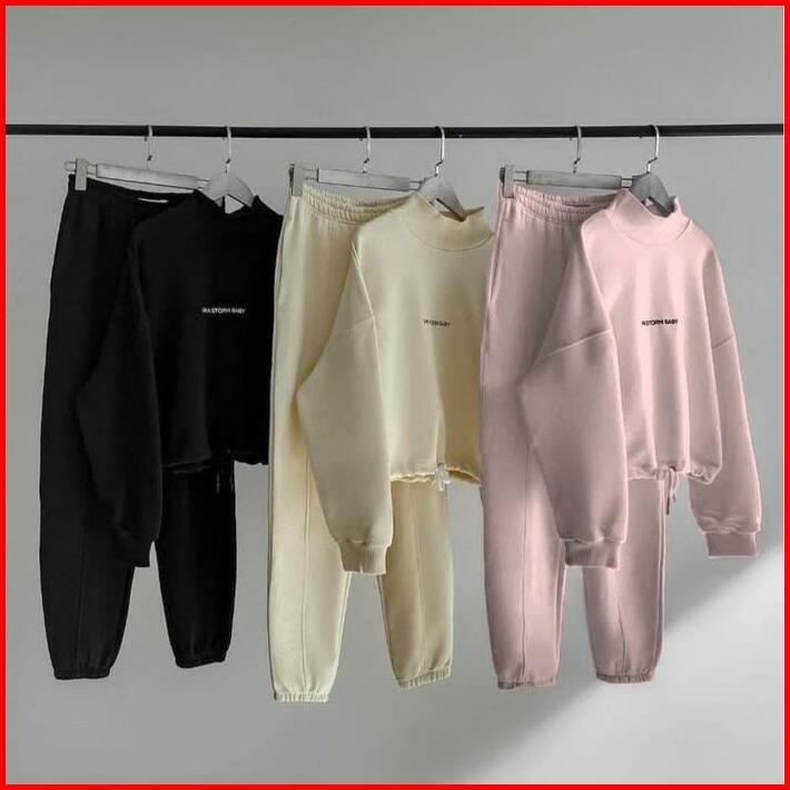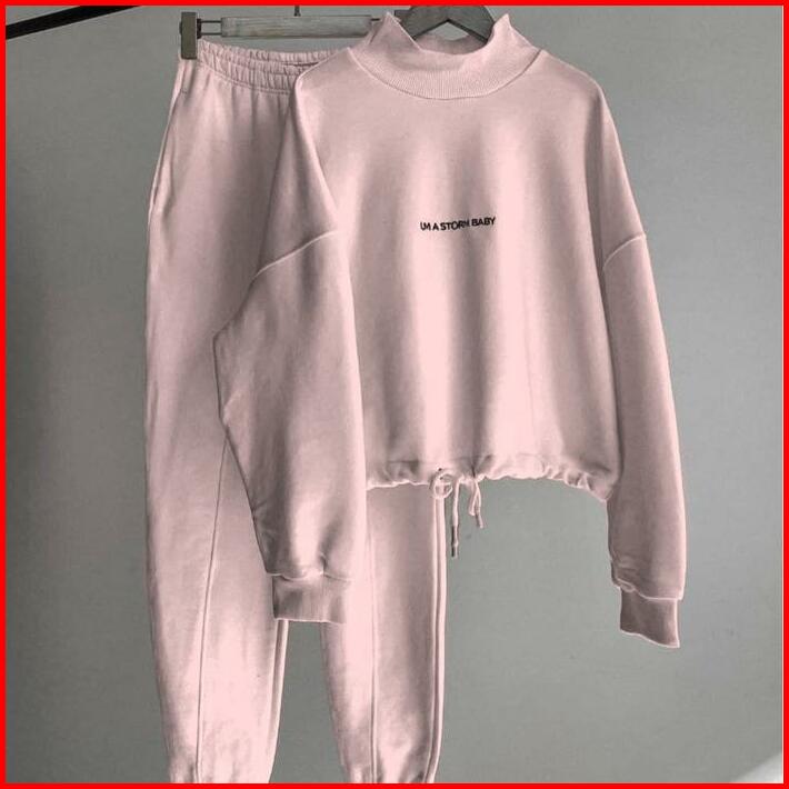 One Set Setelan Sweater Jogger Wanita Sporty Set I Am A Strom Baby Bahan Fleece