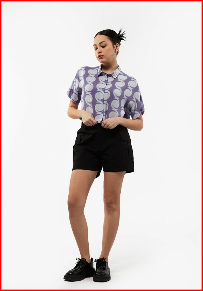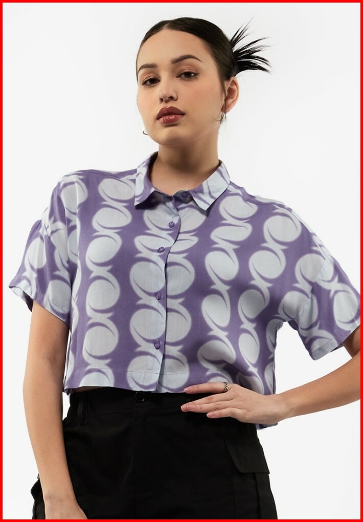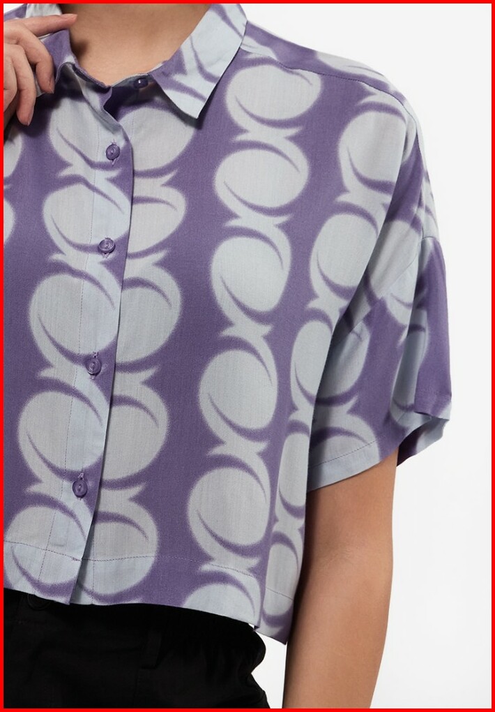 Colorbox Printed Short Sleeve Crop Blouse I-bswkey124e029 Multicolor