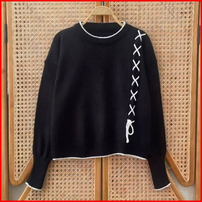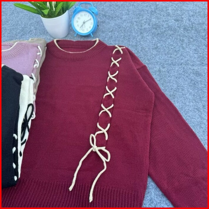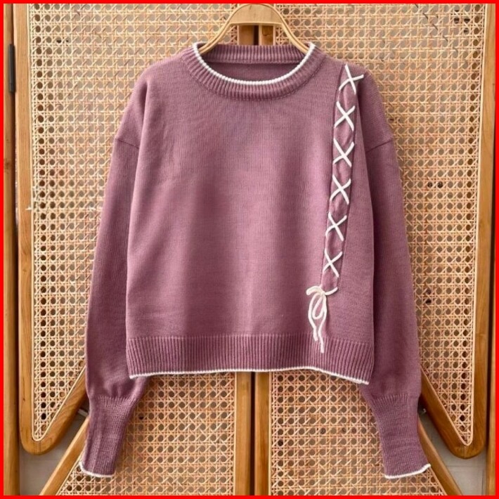 Calista Sweater Rajut Tali Pita Blouse Rajut Motif Tali Camari