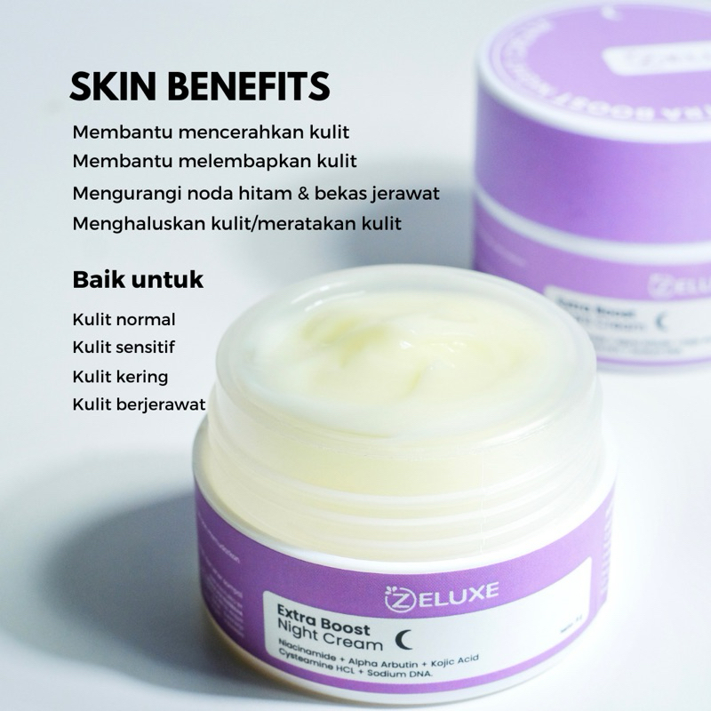 ZELUXE Extra Boost Night Cream - Night Cream Pencerah, Lembapkan & Perbaiki Kulit - Extra Boost Untuk Kulit Cerah & Halu