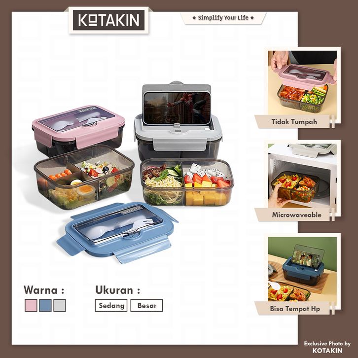 KOTAKIN Lunch Box Kotak Makan Set 2 3 Sekat Wadah Bekal Sekolah Kerja Penyimpanan Makanan