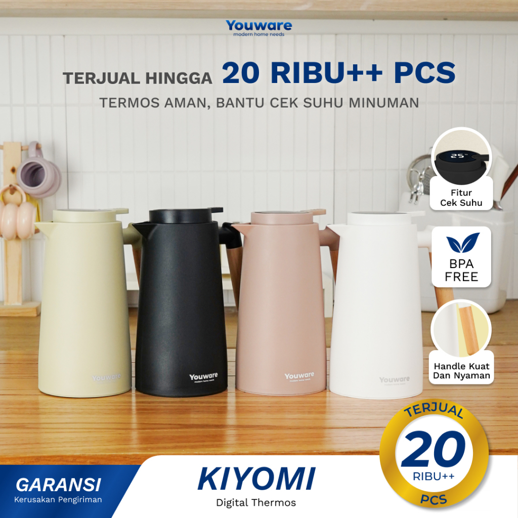 GRATIS ONGKIR Youware Kiyomi Termos Air Panas Dingin Dengan Temperature Digital 1000ml 1 Liter Teko Termos Air Panas