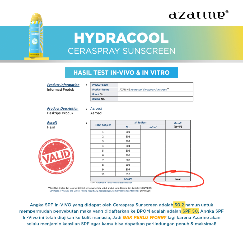 Azarine Ceraspray Sunscreen Spray SPF 50 PA+++ with cooling sensation 50ml UV Defender UV Protector Outdoor Sunscreen Mi