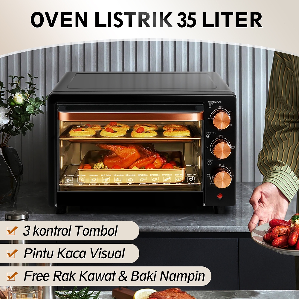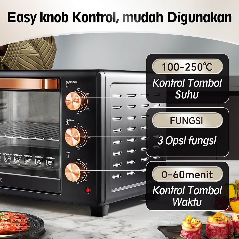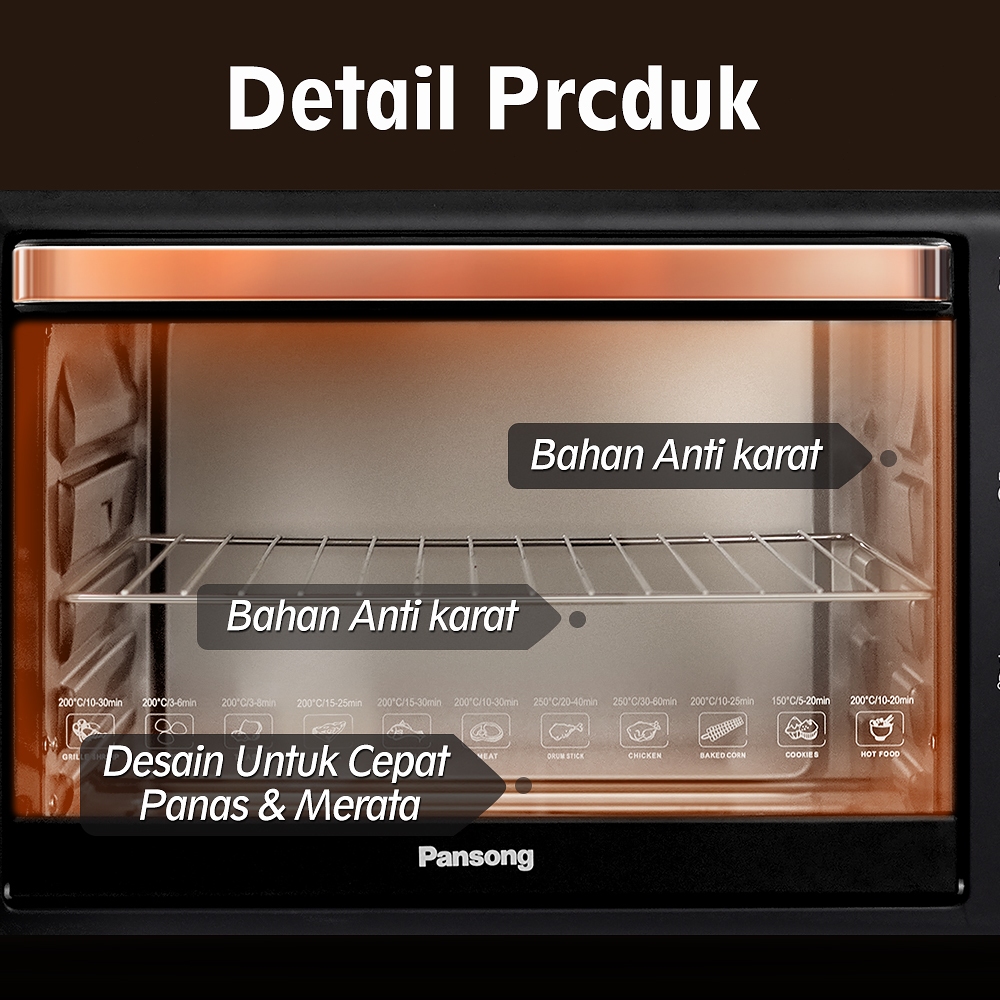 Pansong KX3001 Oven Listrik Low Watt 35L kualitas yang baik Pemanggang Kue Kontrol suhu independen