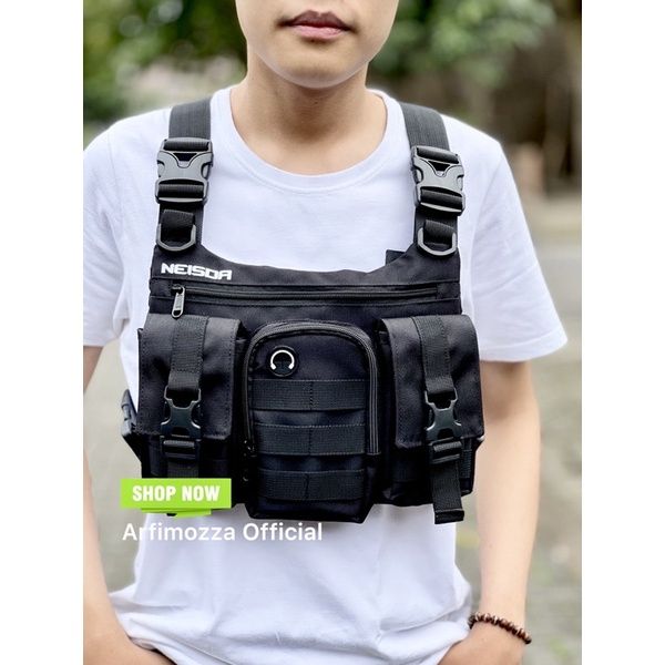 TAS DADA PRIA TACTICAL ARMY CHEST RIG BAG TAS SELEMPANG PRIA ORIGINAL NEISDA BLACK THREE POCKET TERBARU