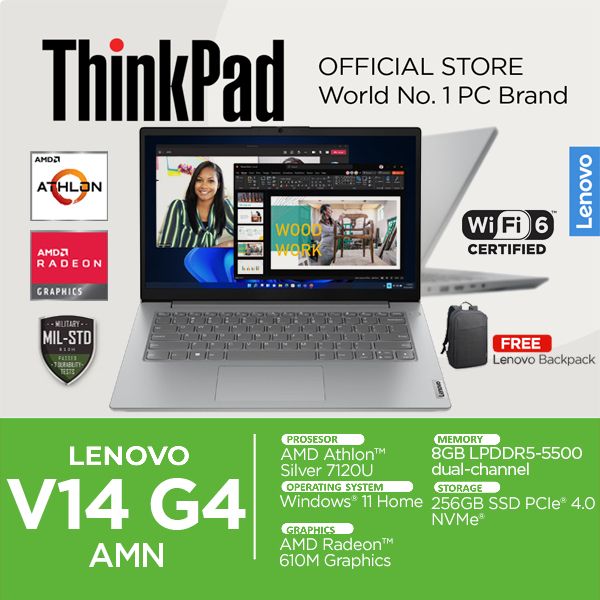 LAPTOP LENOVO V14 G4 AMD ATHLON SILVER 7120U 8GB 256SSD WINDOWS 11 FHD 14 INCH TN RADEON 610M WIFI 6 0YID
