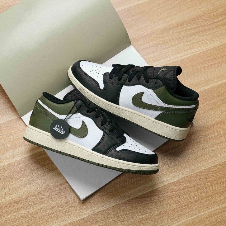 Air Jordan 1 Low Black Toe Medium Olive GS
