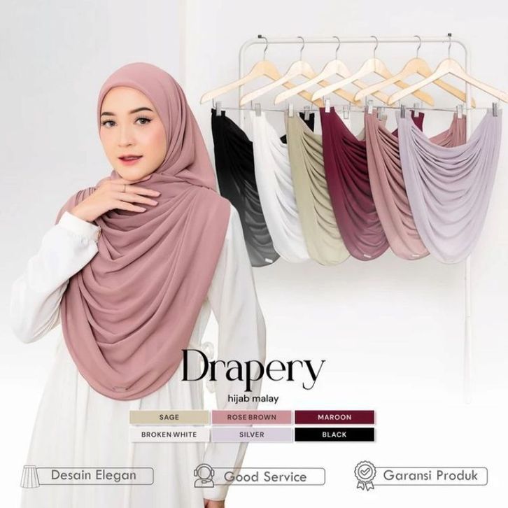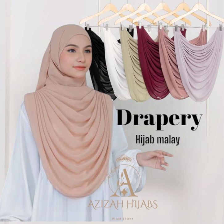 Kerudung Pernikahan Drapery Instan Hijab Set Malasia/Hijab Drapery Depan Ter-Pisah