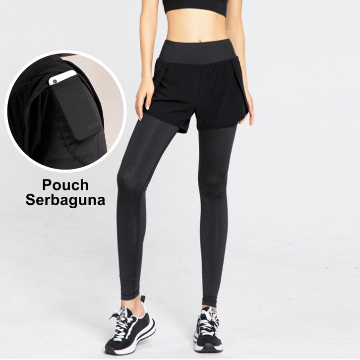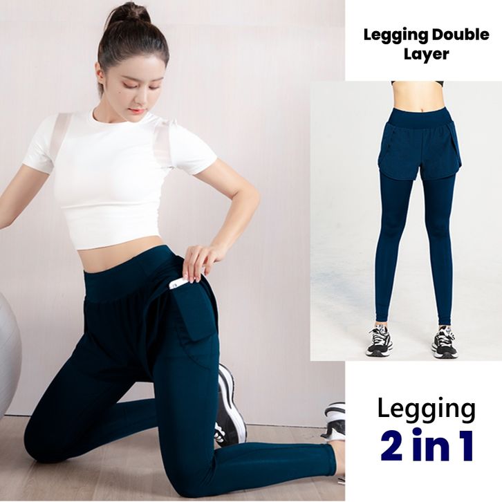 Legging Celana Pendek Olahraga Highwaist 2 In 1 Legging Sportwear For Yoga Booty Gym Legging Double Layer Wanita Tebal