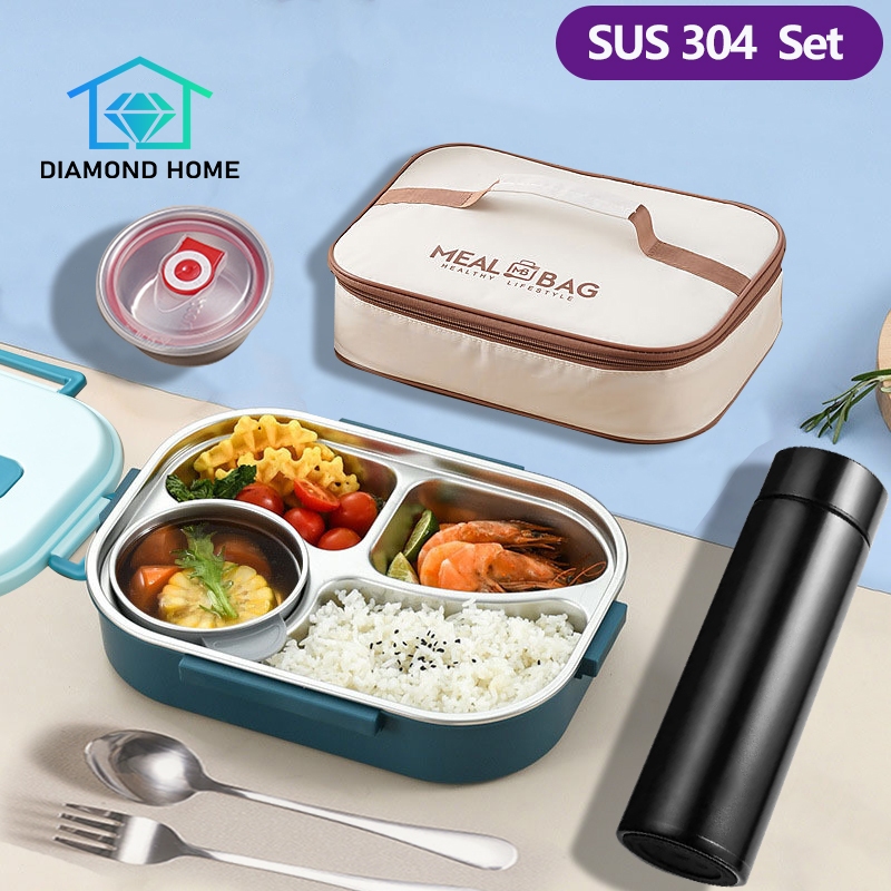 Tempat Makan Bekal Anak Bayi Stainless Lunch Box Set 304 Sekat 4/5 1500Ml Anti Tumpah Sendok Garpu Kotak Bekal