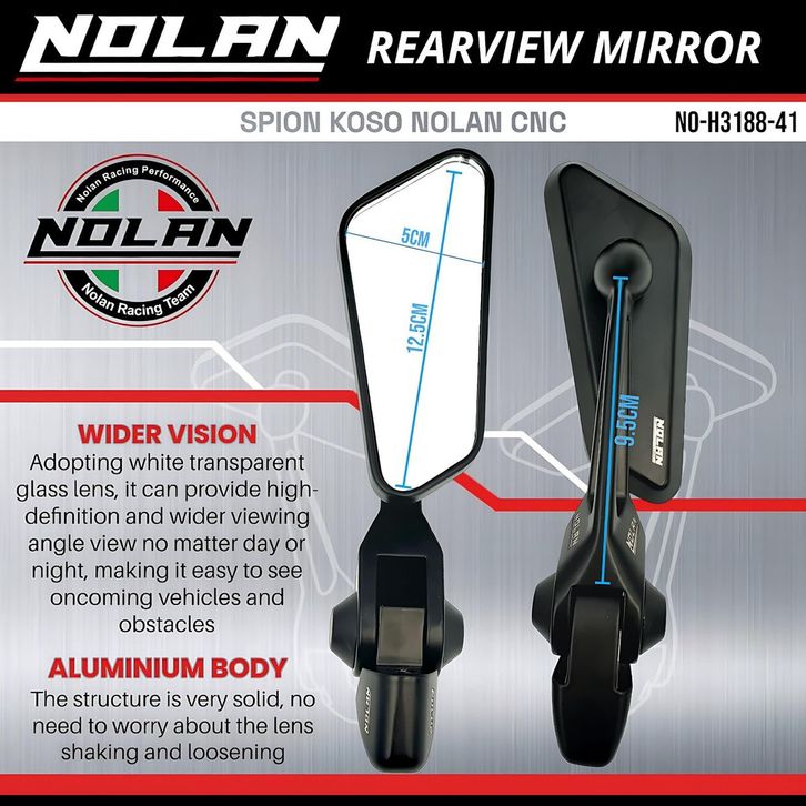 Spion KOSO NOLAN Kaca Putih Bahan Aluminium Full CNC Universal