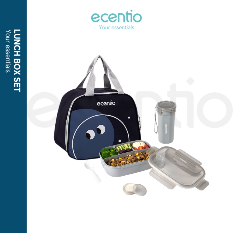 GRATIS ONGKIR Ecentio 4 Grid 1200Ml Lunch Box Set Kotak Makan Anti Tumpah Lunch Bag Anak Anak Bpa Free Kotak Bekal