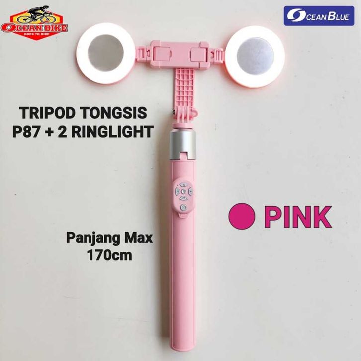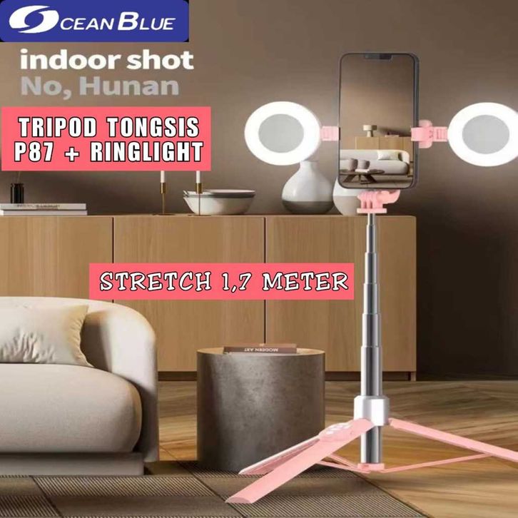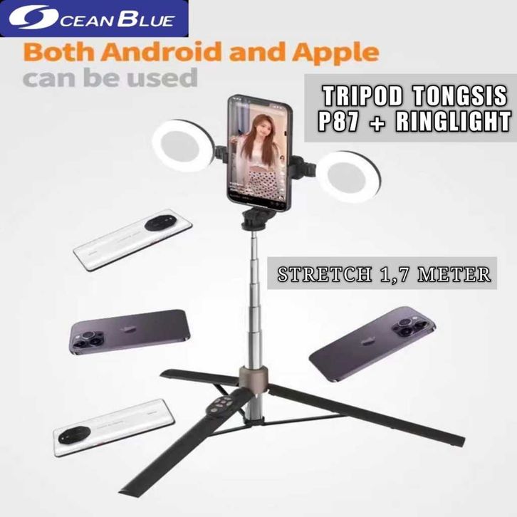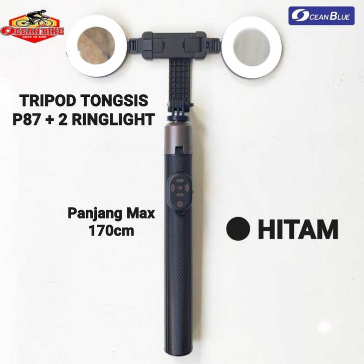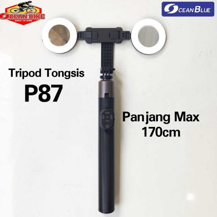 OCEANBLUE Tripod Tongsis Bluetooth Remote Selfie Stick 3in1 Lampu LED Flash 360° P87 170 Cm Tripod Tongsis Bluetooth Rem
