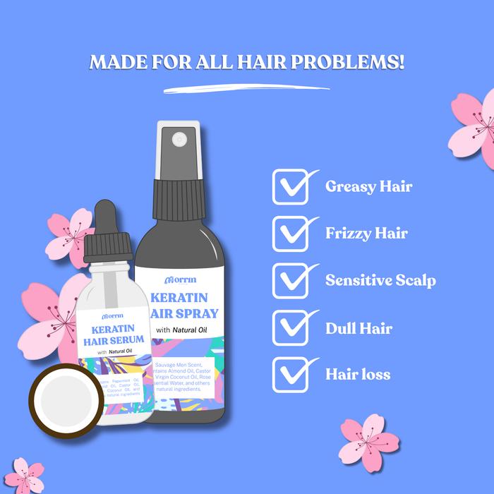 Morrin Perawatan Rambut Al in One - Paket Serum + Spray Mist Fresh Vanilla untuk Rambut Berketombe,