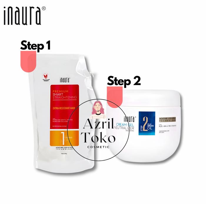 Paket Inaura Premium Smart Straightening 600ML (Step 1 Premium Smart + Neutralizer Step 2) - Pelurus