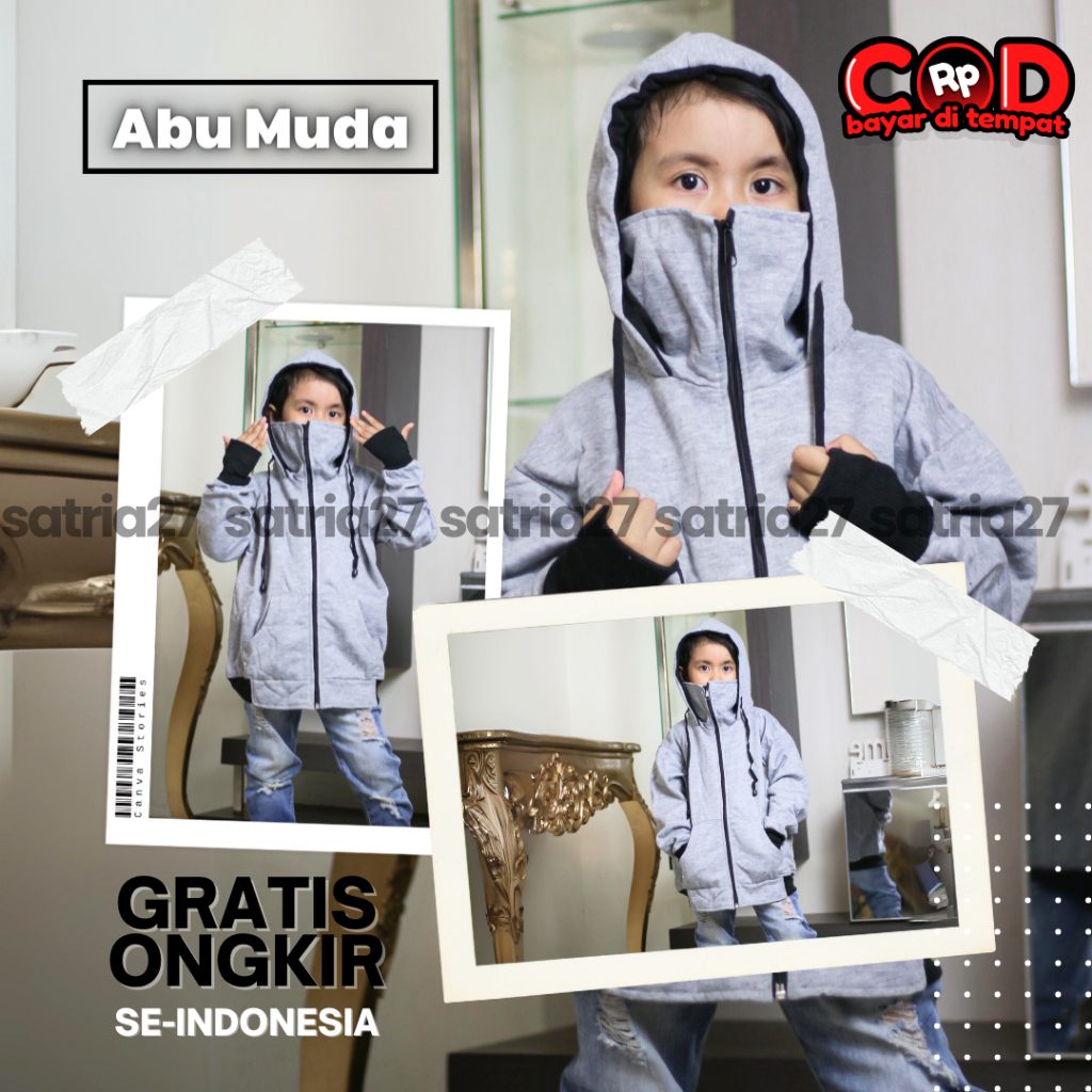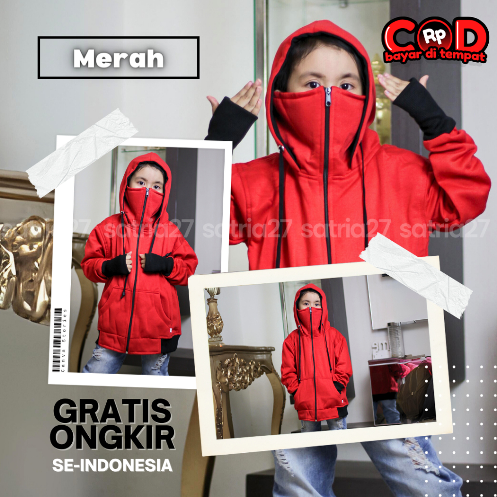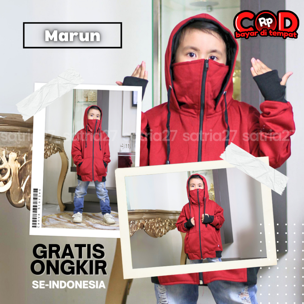 ( TERLARIS ) Jaket Anak Hoodie Zipper Roundhand Ninja Kekinian Lakilaki Perempuan Usia 2Tahun Sampai 12Tahun Polos Bahan