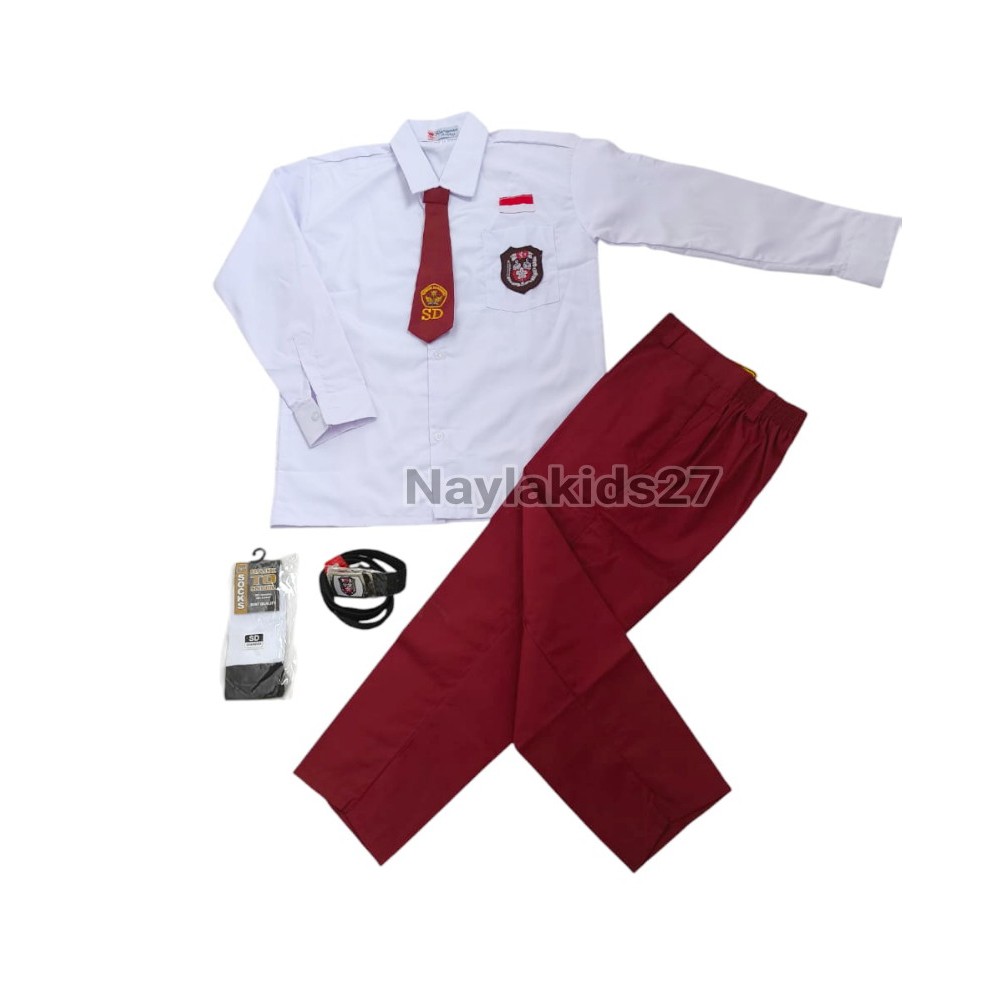 setelan seragam merah putih baju panjang celana panjang seragam sekolah sd