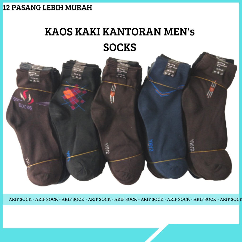 (12 PASANG) Kaos Kaus Kaki Pendek Motif Pria Dewasa / Kaos Kaki Kantoran Mens Socks