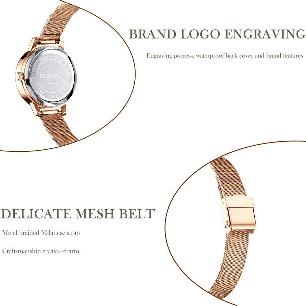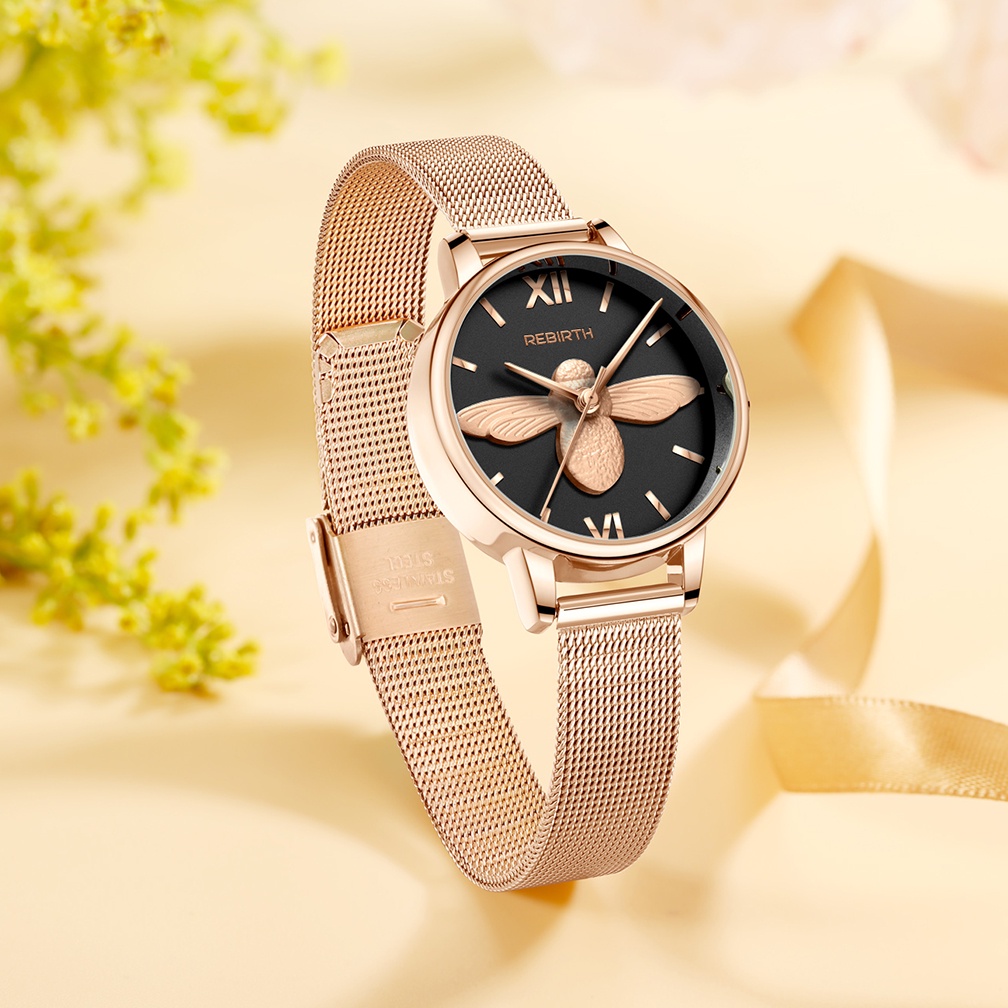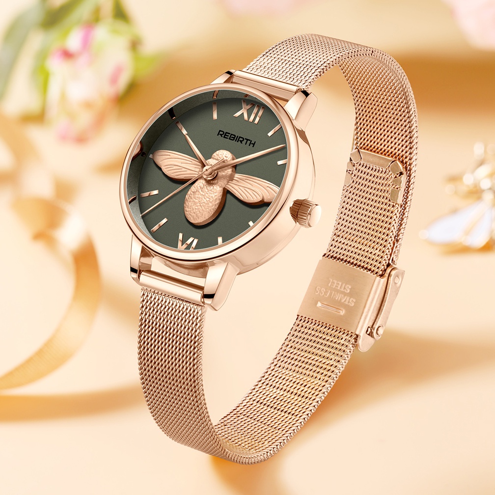 REBIRTH Jam Tangan Wanita Anti Air Original 3D Lebah Dial Estetik Kuarsa Tali Jala Kekinian