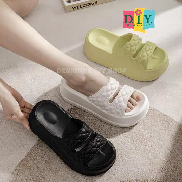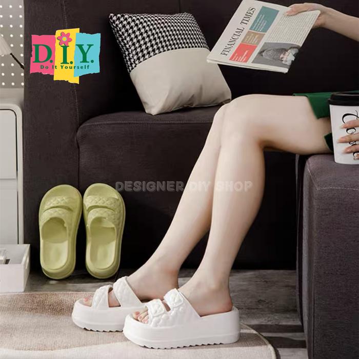 Sandal Wanita Jelly Selop EVA Rubber Strap Dua Sandal Jelly Wedges 7CM Wanita Karet Sendal