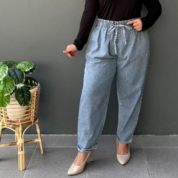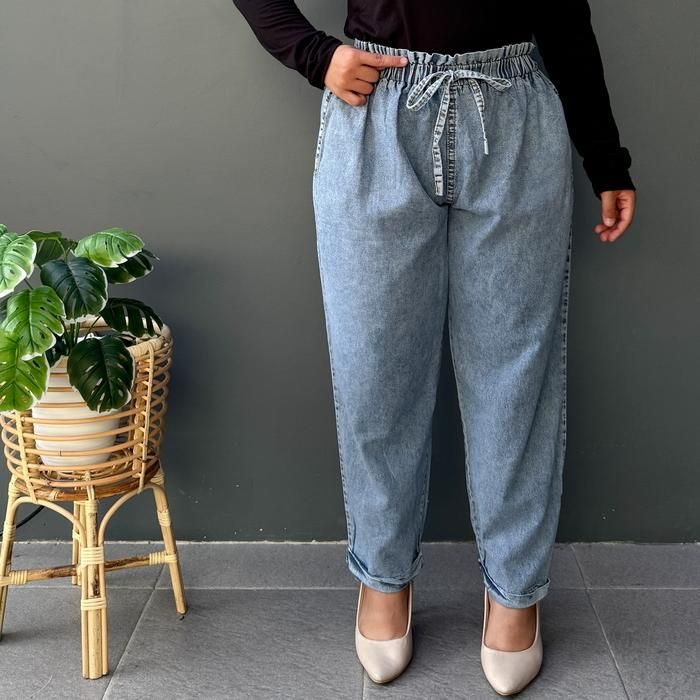 Celana Jeans Wanita Baggy Panjang 90cm fit M-L Lezahrasignature Longpant Denim Baggy Bia