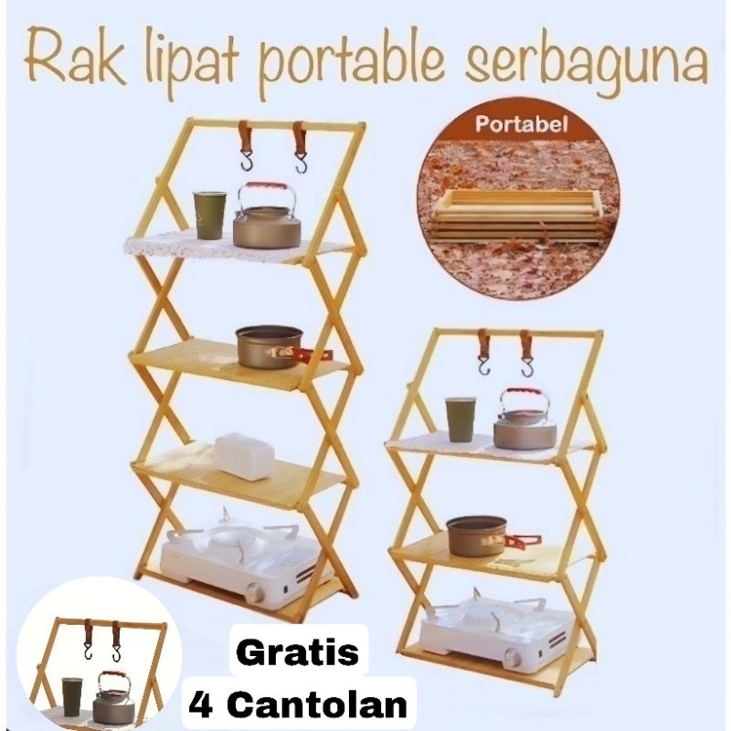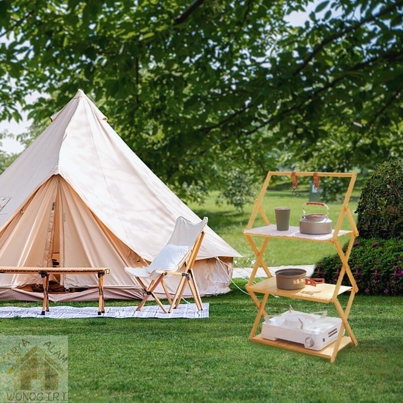 Rak lipat luar penyimpanan Camping Piknik ran Rak Lipat Meja lipat kayu 3/4 susun Lsan Portabel Rak Sepatu Rak li