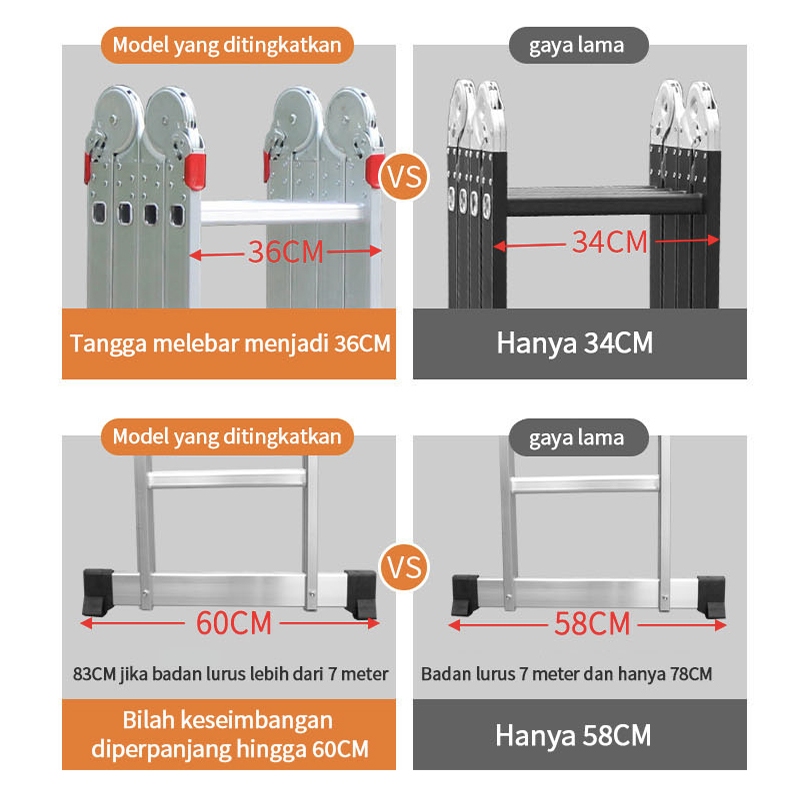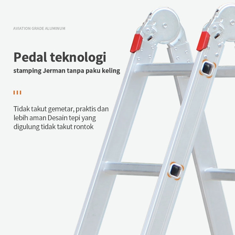 TANGGA ALUMINIUM LIPAT EMPAT 3.7M/4.7M/5.8M TANGGA HERRINGBONE LIPAT SAMBUNGAN CAP MULTIFUNGSI TANGGA LURUS PADUAN ALUMI