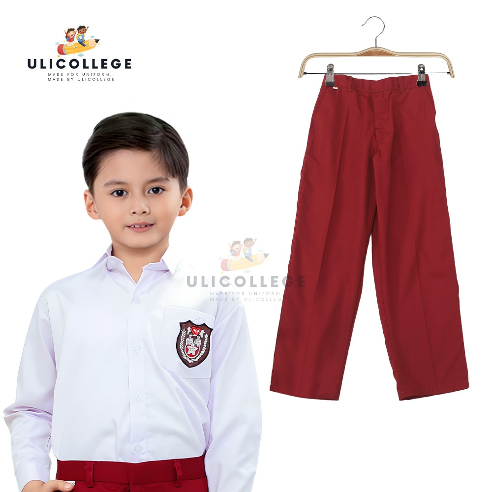 UliCollege Seragam Sekolah SD Celana Panjang Merah Kualitas Premium Celana SD Merah Karet Cowok Putra Laki-Laki