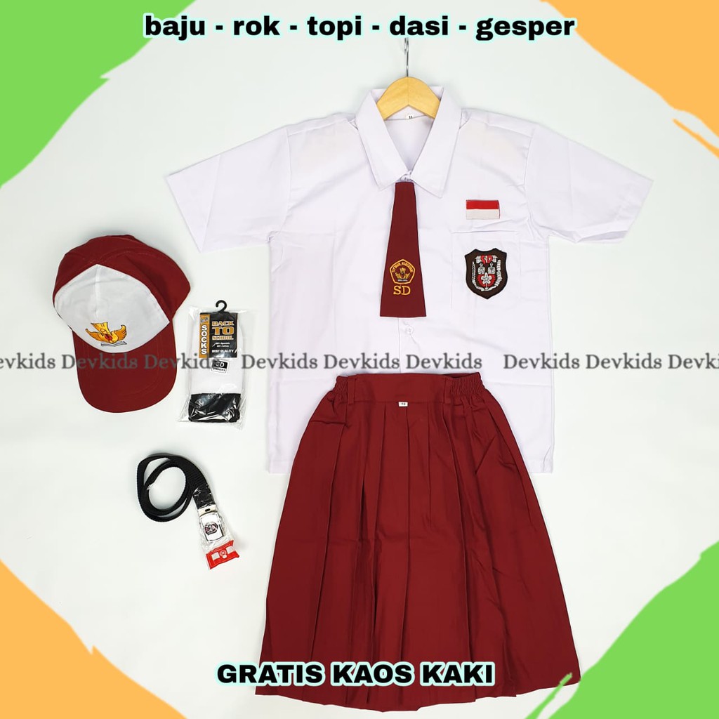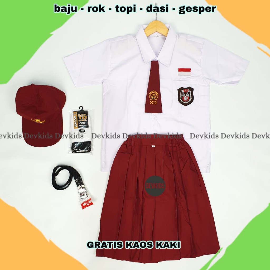 Setelan Super Lengkap Seragam Sekolah SD BAJU PENDEK ROK PENDEK Perempuan Kelas 1-6 SD