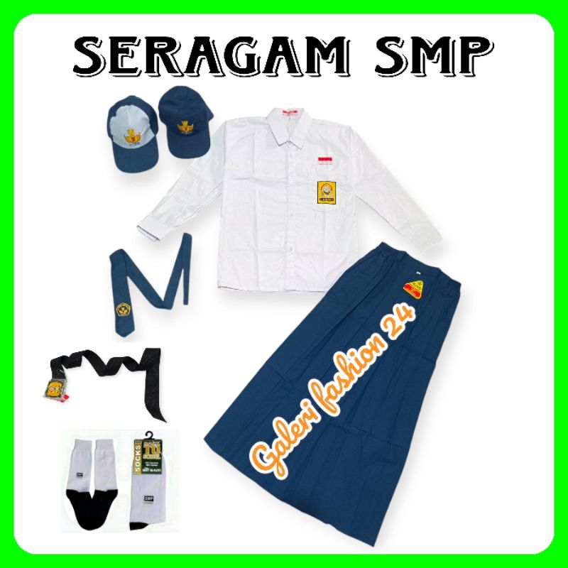 Setelan Seragam Smp Biru Putih Perempuan Baju Panjang