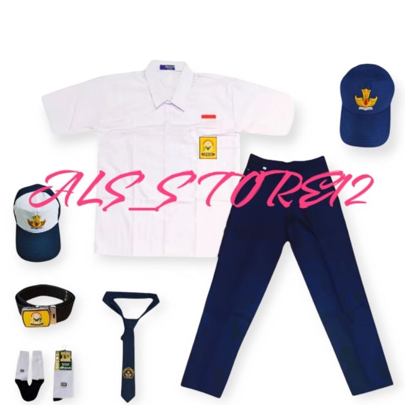 Setelan Super Lengkap Seragam Sekolah SMP Laki Baju Pendek Celana Panjang Cowok