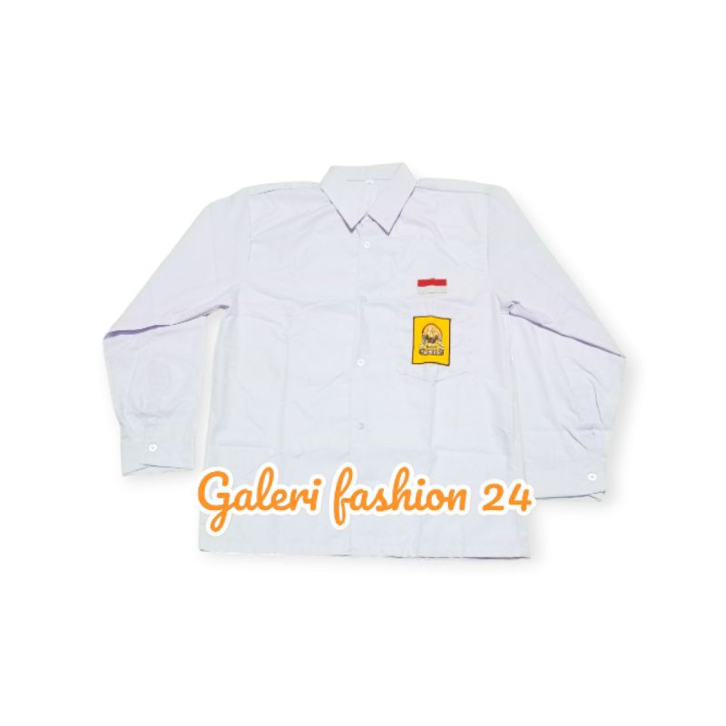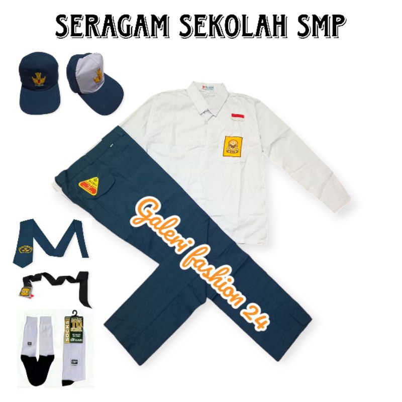 Setelan Seragam Sekolah SMP Biru Putih Laki Laki Baju Panjang Celana Panjang