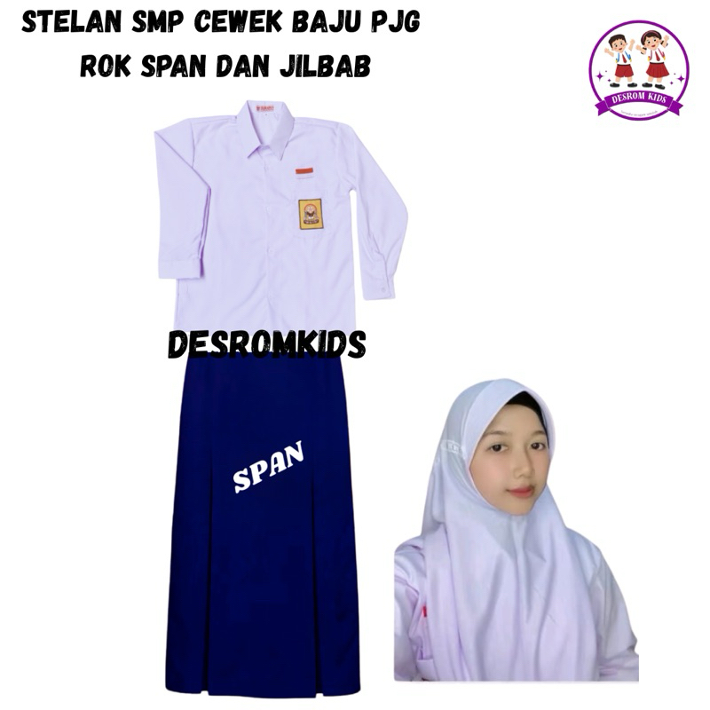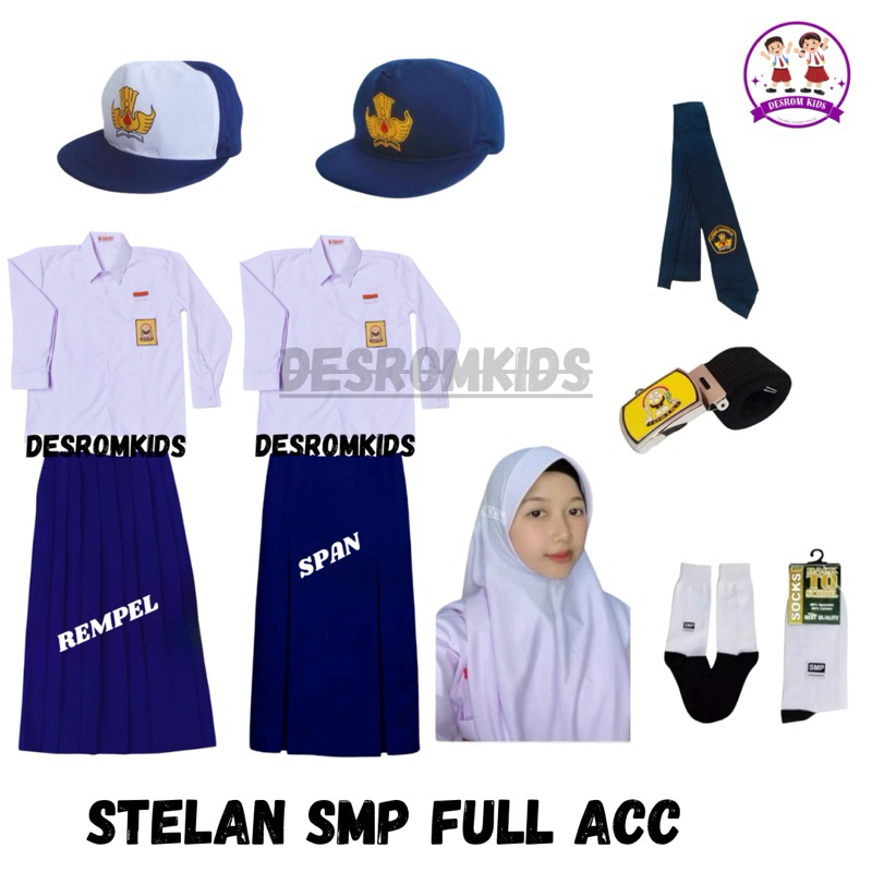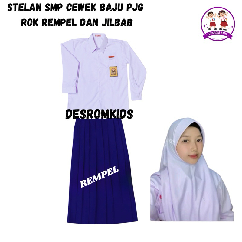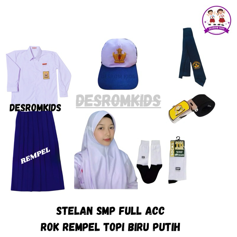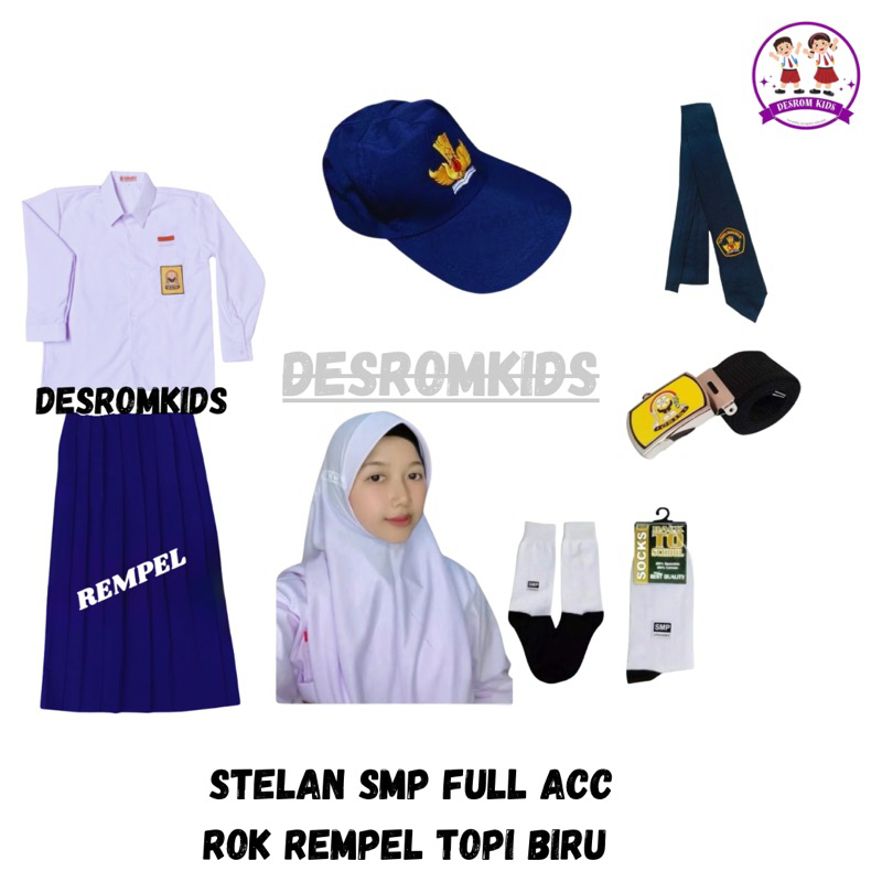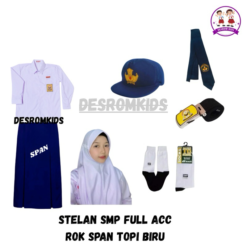 Setelan Seragam Sekolah SMP FUL ACC lengkap dengan jilbab Osis Biru Putih Perempuan Atasan Lengan Panjang Dan Rok Span/R