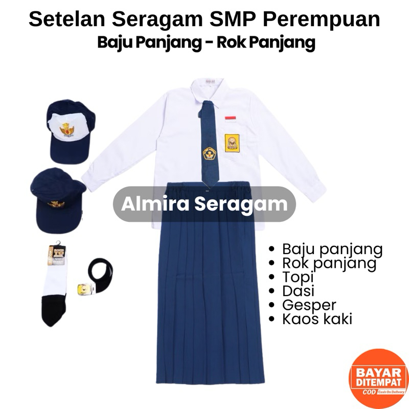 Setelan Super Lengkap Seragam Sekolah SMP BAJU PANJANG ROK PANJANG Perempuan Cewek