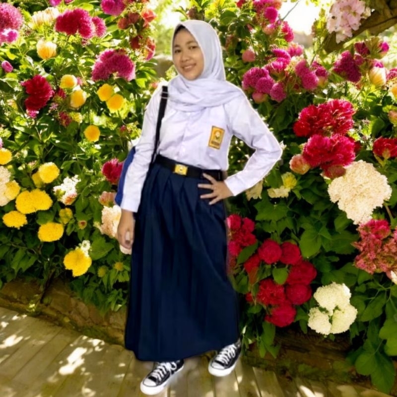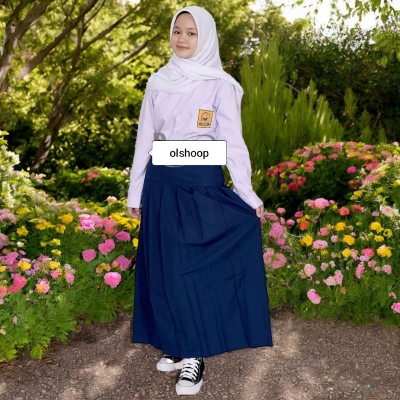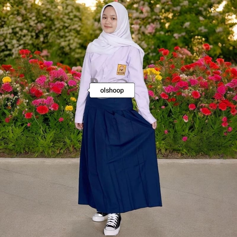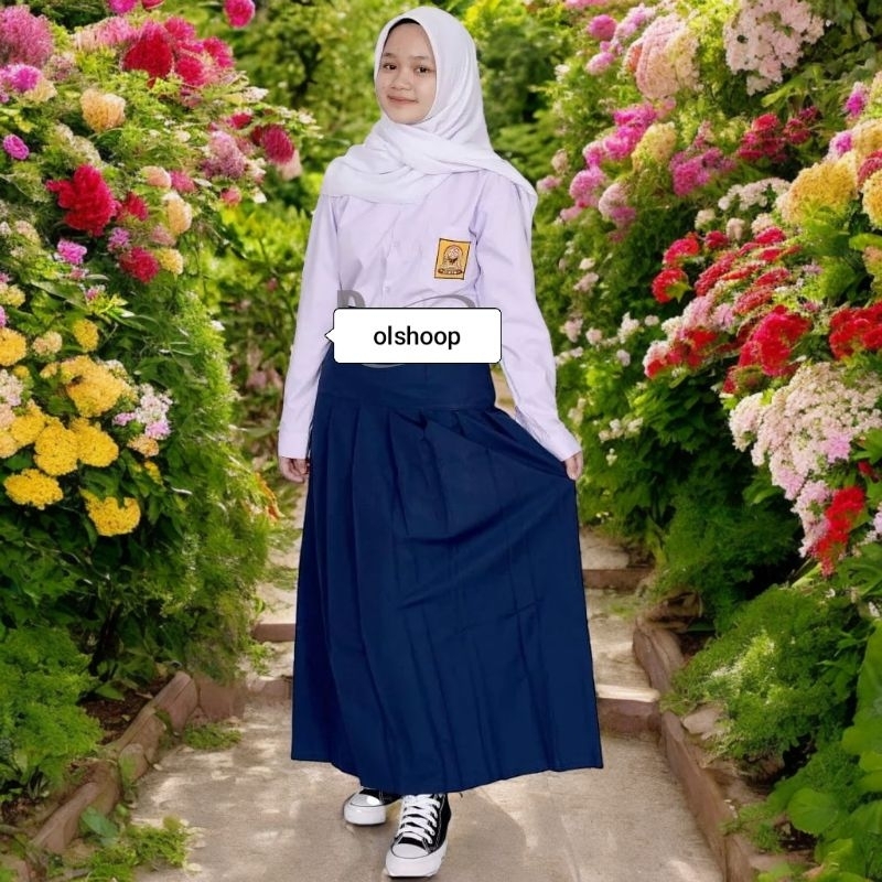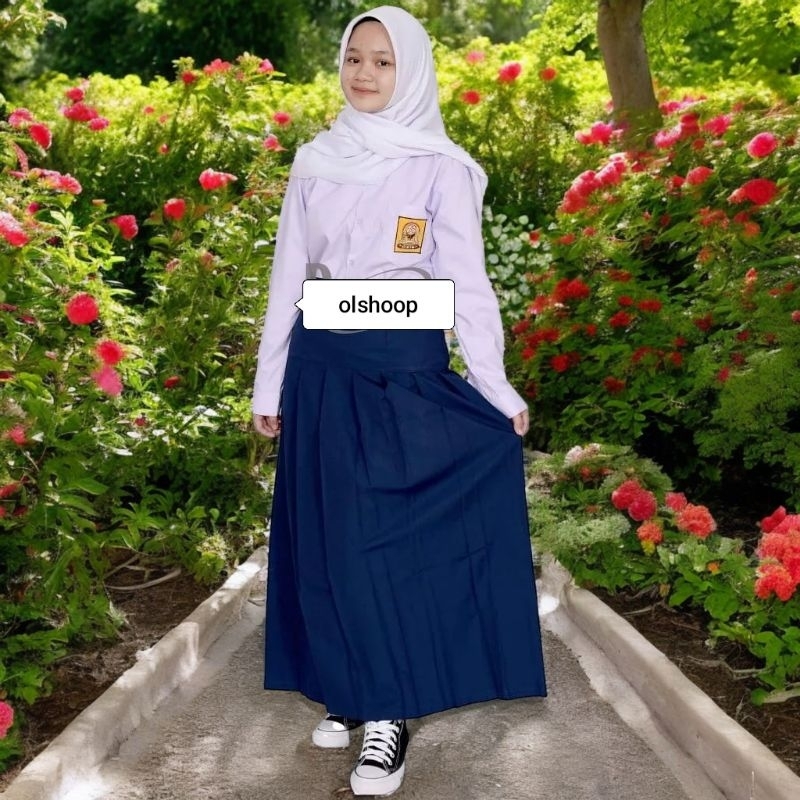 Setelan Seragam Sekolah SMP Putih Biru Lengan Panjang Rok Panjang bahan oxford twist adem nyaman di pake
