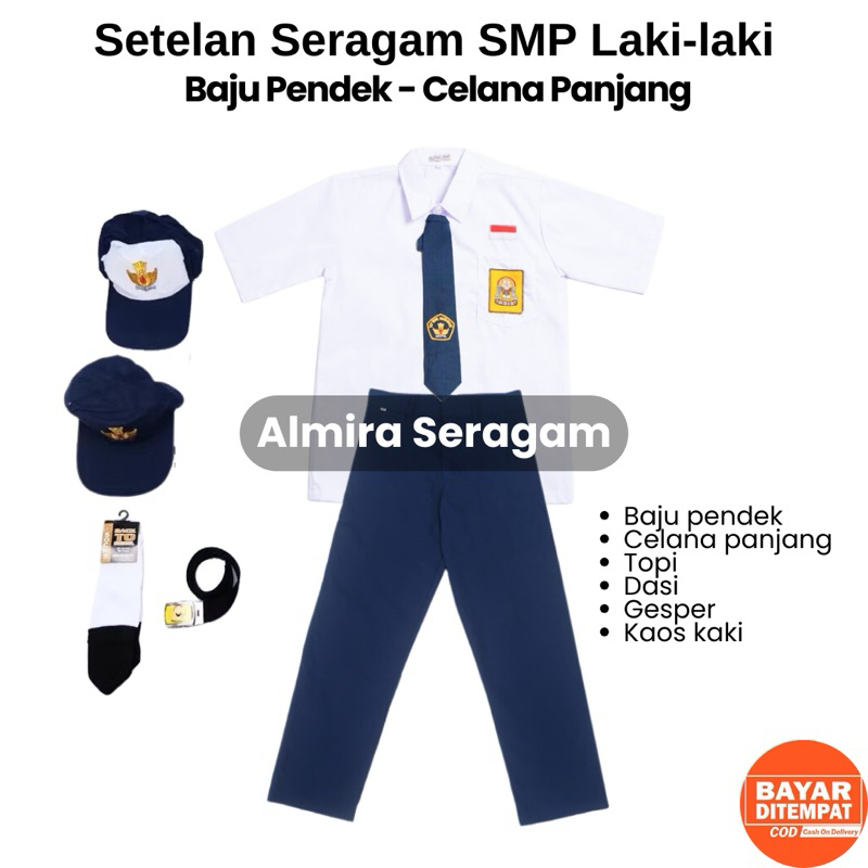 Setelan Super Lengkap Seragam Sekolah SMP LAKI BAJU PENDEK CELANA PANJANG Cowok