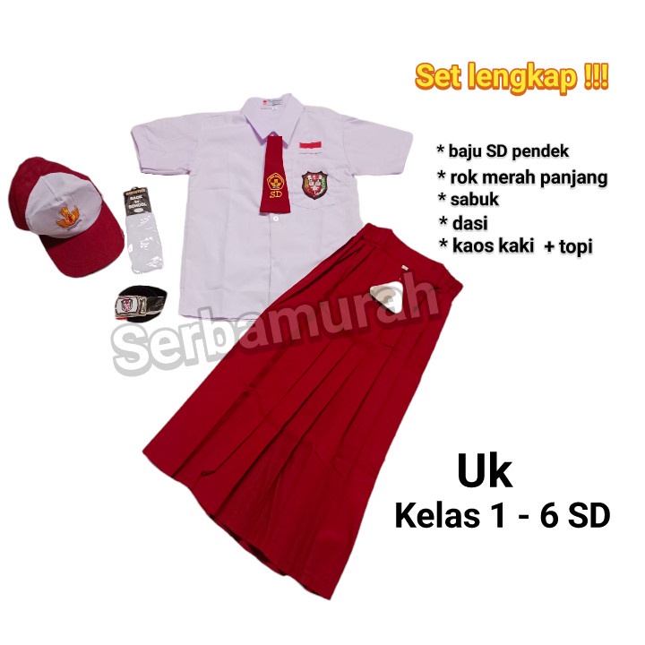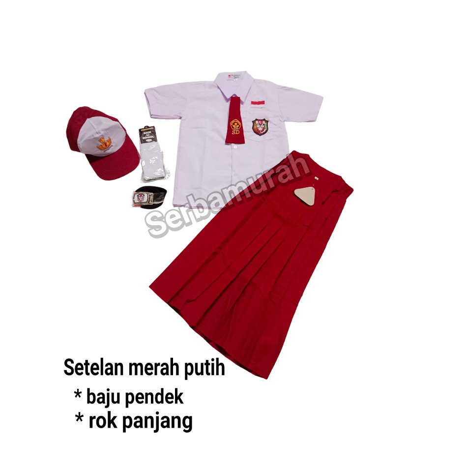Setelan Seragam Merah Putih Baju Pendek Rok Panjang
