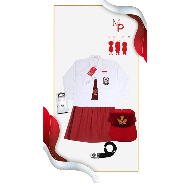 merah putih seragam Setelan Super Lengkap Seragam Sekolah SD BAJU PANJANG ROK PANJANG Perempuan Cewek