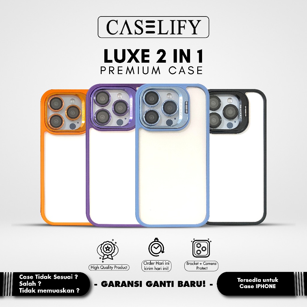 CASELIFY LUXE 2 IN 1 FREE BONUS LENSA CAMERA PROTECTOR CASE IPHONE 11 12 13 14 15 PRO PLUS MAX