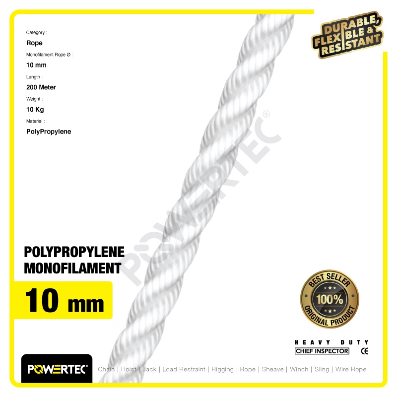POWERTEC TAMBANG NYLON / NILON 10MM X 200M POLYPROPYLENE PP MULTI ROPE