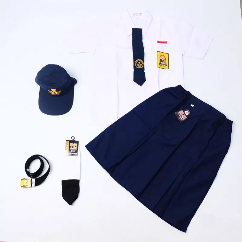 Setelan Seragam Sekolah SMP Putih Biru anak Perempuan baju pendek Rok pendek