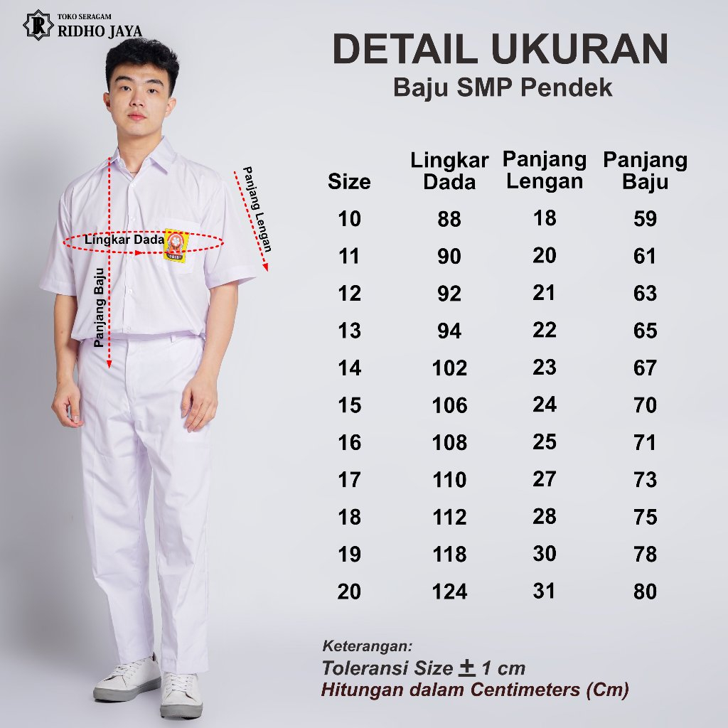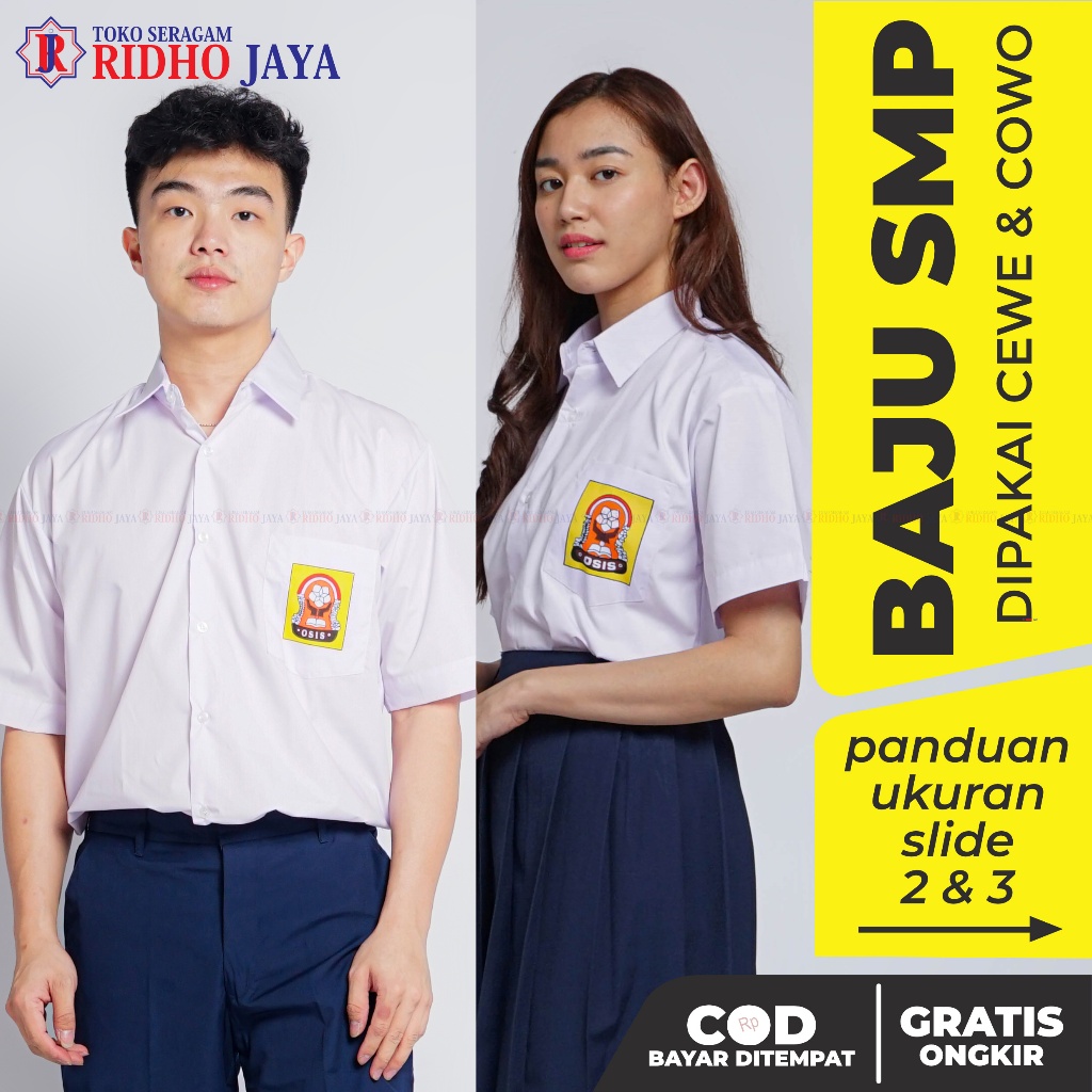 RIDHO JAYA Baju SMP Pendek Seragam Sekolah Putih