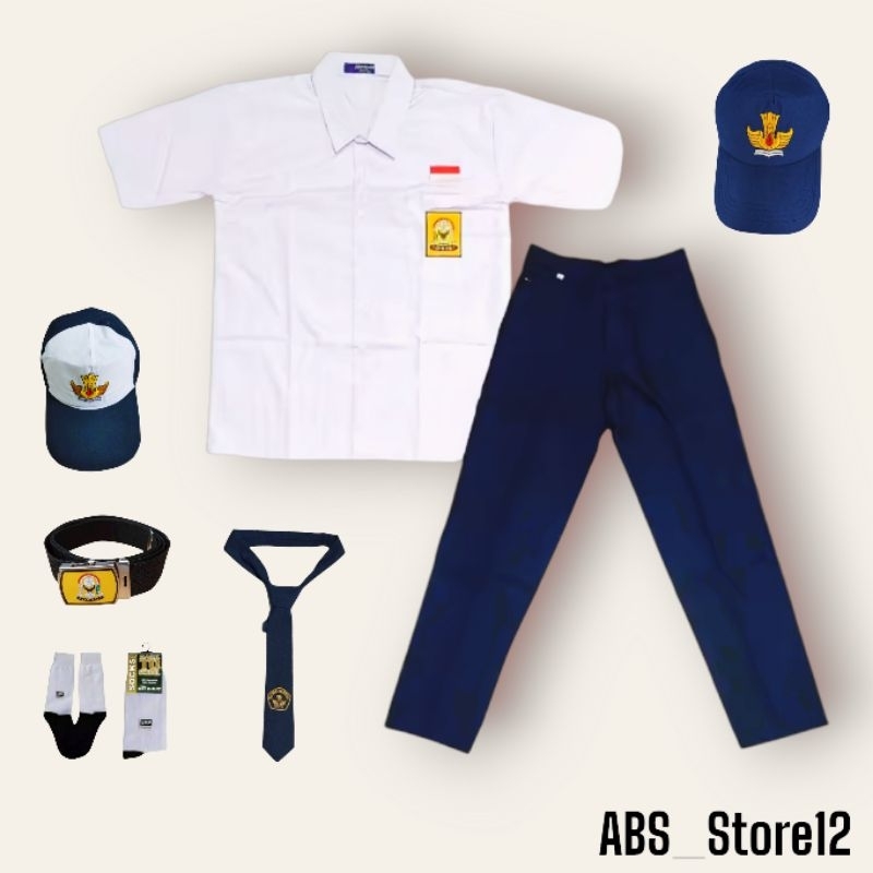 Setelan Super Lengkap Seragam Sekolah SMP LAKI BAJU PENDEK+CELANA PANJANG Cowok