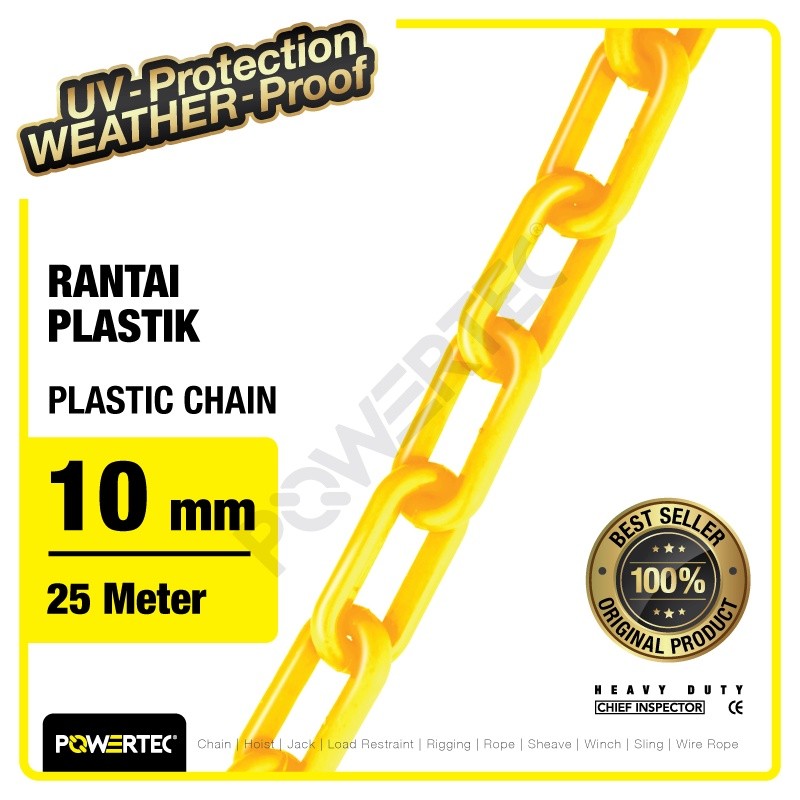 POWERTEC RANTAI PLASTIK PVC 10 MM X 25 M PLASTIC CHAIN - KUNING