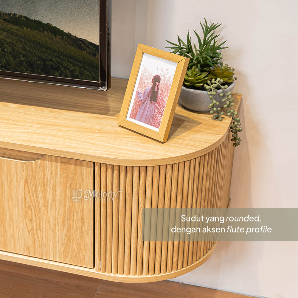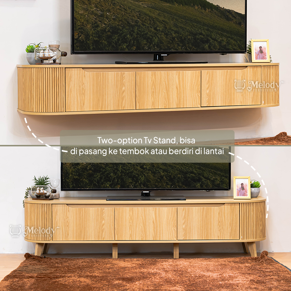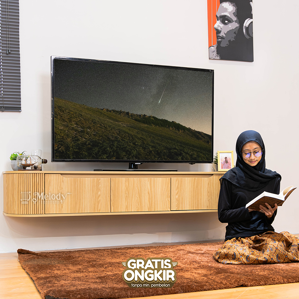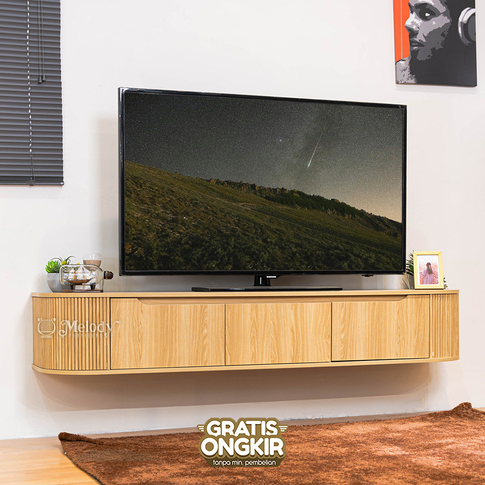 Melody Furniture - Meja Rak TV Gantung Japandi 2 Opsi TV Stand LILAN WALL MOUNT TV 180 cm - Euro Oak
