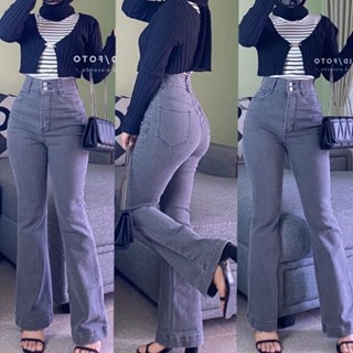 (Gratis Ongkir) Highwaist Cutbray Jeans Wanita Celana Stretch Kekinian Flared Premium Quality Panjang Denim Import