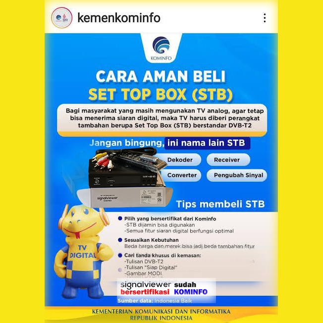 Set Top Box STB TV Digital Signal Viewer Receiver Penerima Sinyal Digital DVB T2 SNI Sertifikasi Kominfo Original Full H