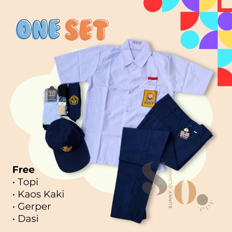 Setelan Super Lengkap Seragam Sekolah SMP LAKI Baju Pendek Celana Panjang Cowo